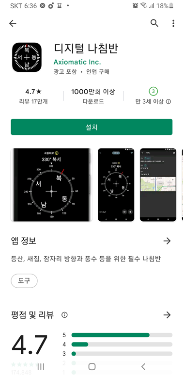 구글 플레이스토어나 앱스토어에서 나침반을 검색한 뒤 평점이 높고 리뷰가 명확한 것을 선택하세요.