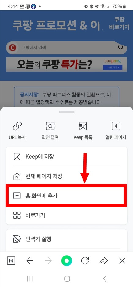 3. 네이버 앱 홈 화면에 추가하기 (스마트폰)