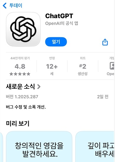 반드시 개발사가 OpenAI인 공식 앱인지 확인하는 것이 명확한 보안의 첫걸음입니다.