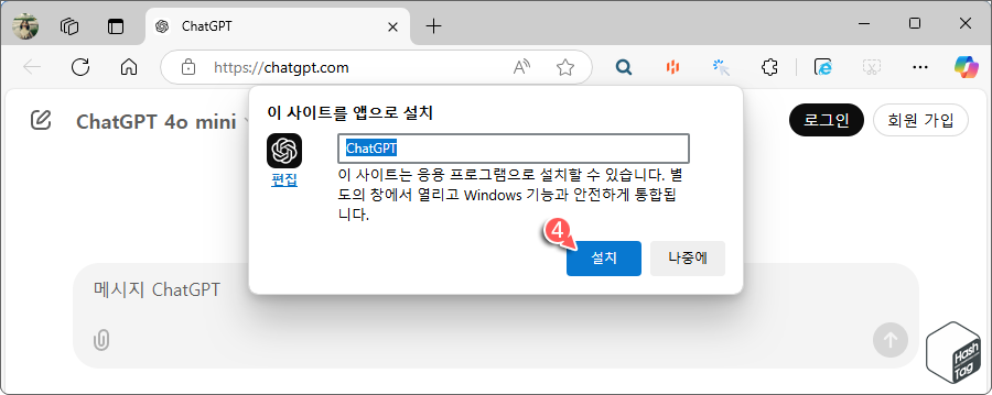 OpenAI에서 제공하는 공식 앱을 선택해 설치하면 조력자처럼 실시간으로 설치 과정을 가이드해 줍니다.